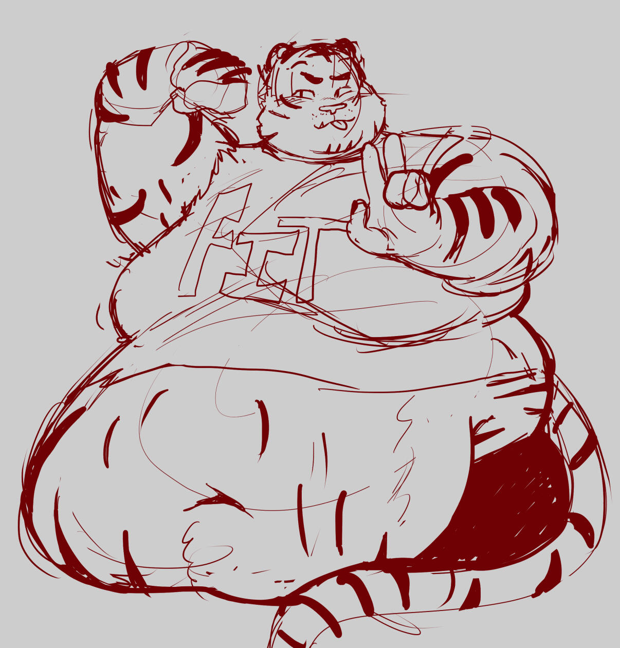 Height: 6'5"ishWeight: Variable, starts thin and muscular, ends up in a variety of sizes that are all BIG. At least 500 lbs. Still convinced he's, like, 270 lbs.Niche: Fat jock, WG denial, himbo, my "fursona".